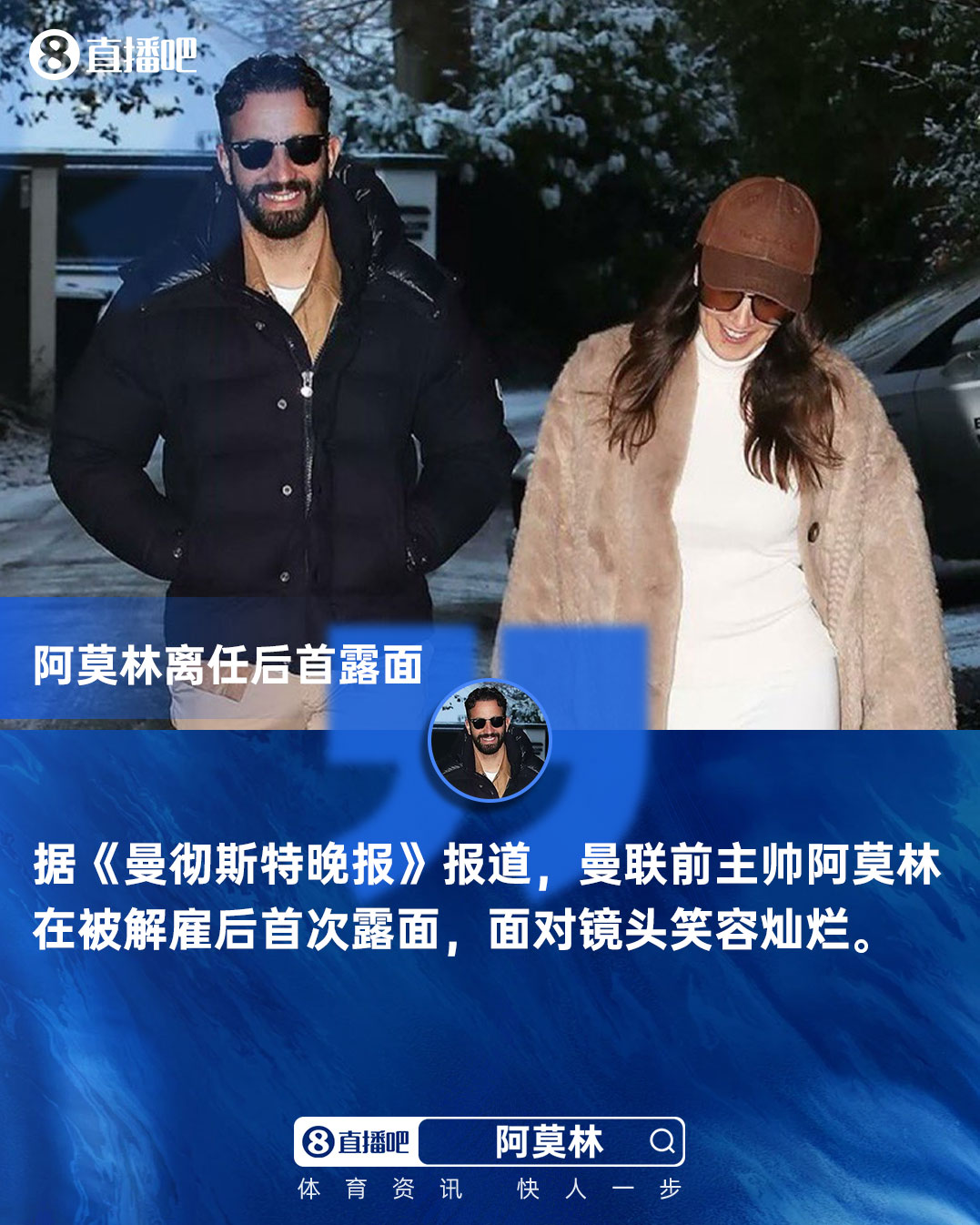音讯称,就在阿莫林被解任的音讯公布几小时后,阿莫林被拍到与妻子说谈笑笑的一同离开位于柴郡的住所,阿莫林身着玄色羽绒服,戴着墨镜,双手插兜,脸上瓦解灿烂的笑貌,看起来精神现象很好。