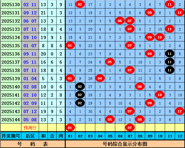 三少第2025145期体彩大乐透后区余数分析:上期后区开出奖号05和08,为全2路余数奖号,本期后区扬弃0路余数号码,五码参考01、04、05、07、11。