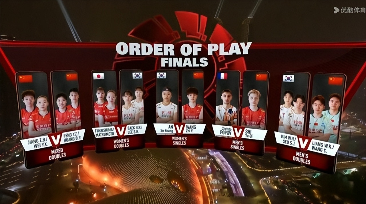 在悉数五个单项的决赛席位中,国羽占据了5席(男单石宇奇、女单王祉怡、混双两对组合会师占2席、男双梁伟铿/王昶),依旧是最大的赢家。韩国则紧随自后,在女单(安洗莹)、男双(金元浩/徐承宰)和女双(白荷娜/李绍希)三个形式上领有冲金点,实力雷同强盛。日本(女双福岛由纪/松本麻佑)和法国(男单小波波夫)各占一席。