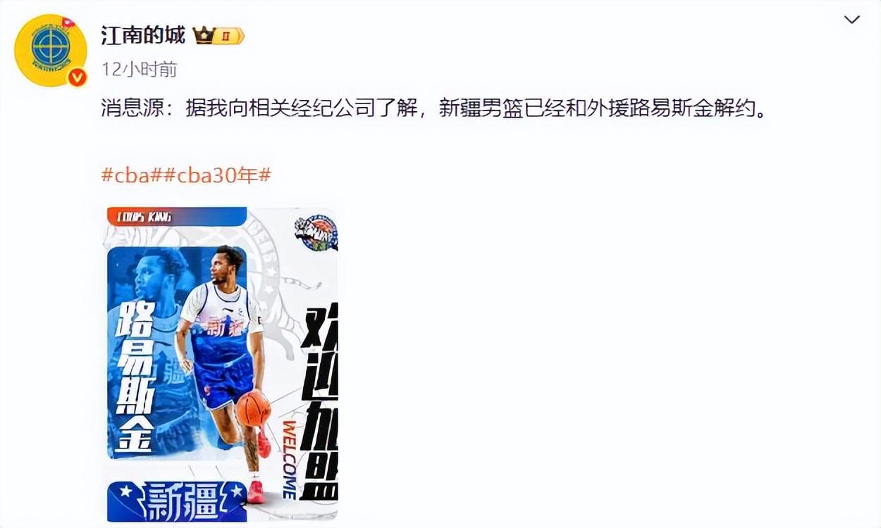 12月10日最新音讯,据知名媒体东谈主江南的城报谈,新疆伊力特男篮也曾和外助路易斯·金解约。