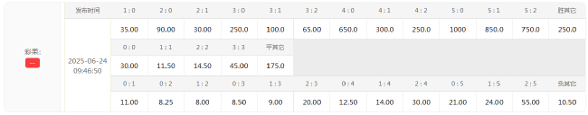 竞彩官方同期开出了比分赔率,其中皇马2-1取胜最低,现在1赔8,其次是2-0和3-0,分辩为1赔8.25和1赔8.50,而萨堡负其它的赔率也仅为1赔10.5。连合胜平负指数皇马低至1赔1.16,星河军舰晋级无悬念,数据利好大捷值得一搏。