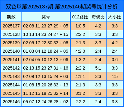 上期转头:双色球2025146开奖号码为:05、07、12、24、26、28 + 02。
