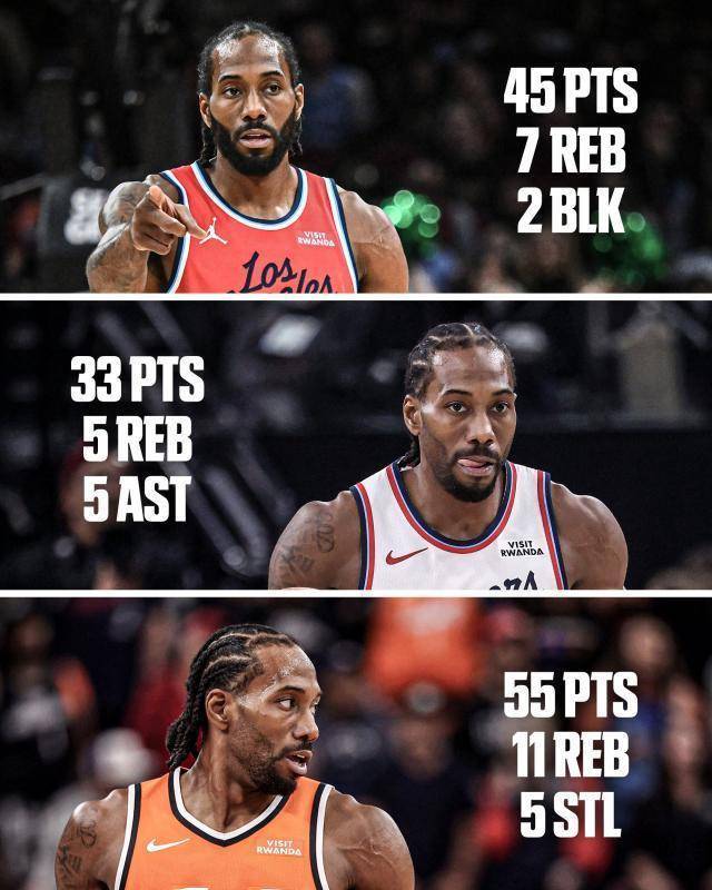 在六连胜本领,用“现代乔丹”来神态莱昂纳德少量也不为过。在本赛季之前,莱昂纳德生计从未在哪一年老例赛中单场拿到跳跃2次40+,而只是在6连胜本领,他就作念到了3次。这位并不以超高得分著称的时尚此前生计最高分是45分,而在6连胜的后三场比赛里,他就两次达到这一分数,对阵活塞一战更是狂砍55分,创造个东说念主得分记录的同期,也追平了哈登在本赛季早些时候创造的快艇队史单场得分记录。
